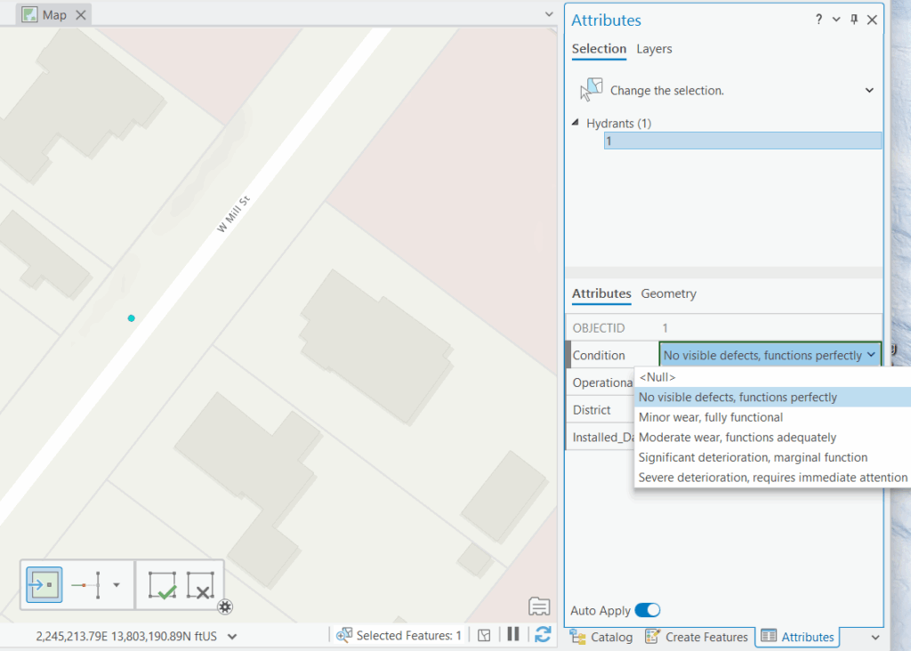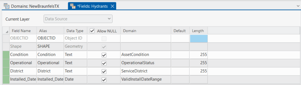 Now that we’ve created our domains, we need to apply them to the appropriate fields in our Hydrants feature class.