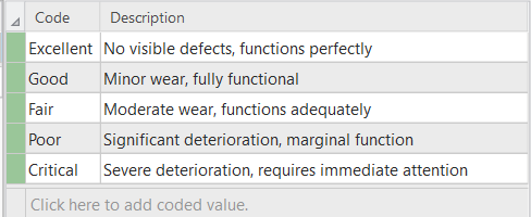 - In the Coded Values section, click the row to begin adding values