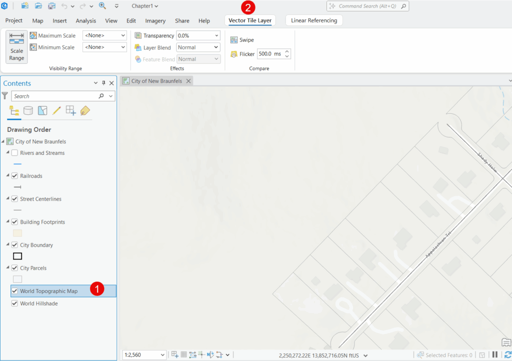 When you select a layer in the Contents pane, contextual tabs appear based on what type of layer you’ve selected. For example: